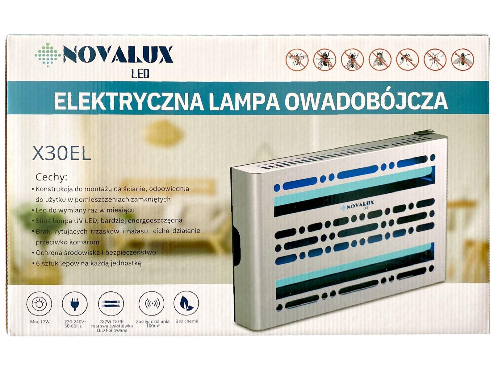 Dzięki wykorzystaniu technologii UV-A LED, lampa NovaLux przyciąga owady, takie jak muchy i komary, aby je następnie humanitarnie unieruchomić na powierzchni wkładu lepowego lub efektywnie zneutralizować przy pomocy siatki rażącej. Urządzenie zapewnia nie tylko efektywność, ale również komfort użytkowania przez cichy tryb pracy oraz łatwość montażu – może być zawieszone na ścianie lub umieszczone pod sufitem, co pozwala na optymalne wykorzystanie przestrzeni.