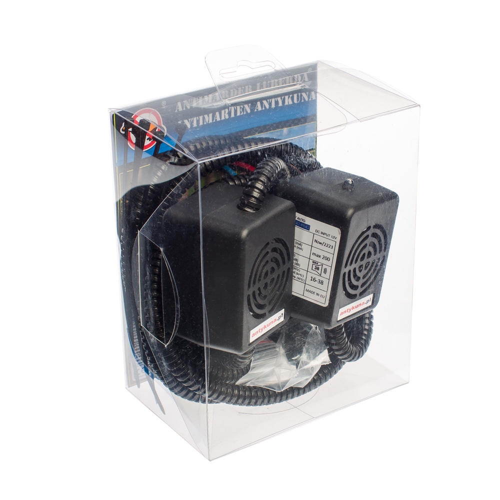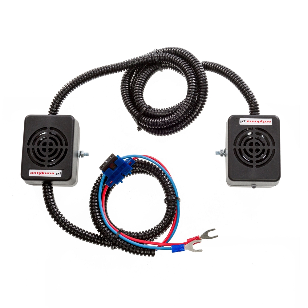 Pamiętaj: Kuny i inne gryzonie dostają się do komory silnika od strony zawieszenia i skrzyni biegów. Dlatego głośnik odstraszacza powinien być skierowany w stronę podwozia – tamtędy zwierzęta najczęściej wchodzą na silnik. Szczegółowa instrukcja montażu znajduje się w opakowaniu urządzenia.