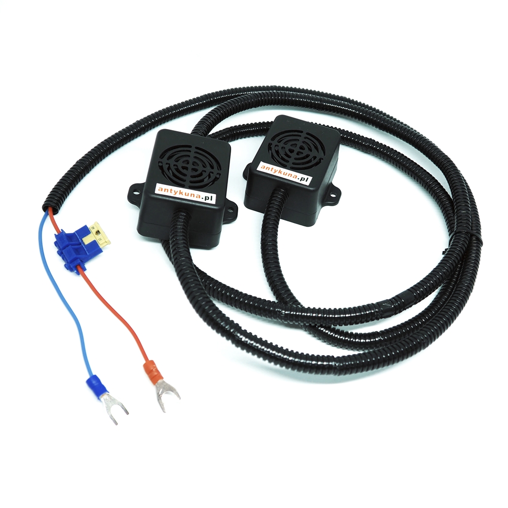 Odstraszacz posiada 2 niezależne głośniki, dzięki czemu można je zamontować w dwóch miejscach. Chroni dwie strefy wejścia do silnika. Zastosowanie znajduje w silnikach z dużą komorą silnika, bez płyty zabezpieczającej, z widocznymi dwiema strefami wejścia gryzoni. Najczęściej wybierany produkt przez naszych klientów. Odstraszacz podwójny chroni maksymalnie silnik przed niechcianymi gośćmi w naszych pojazdach.