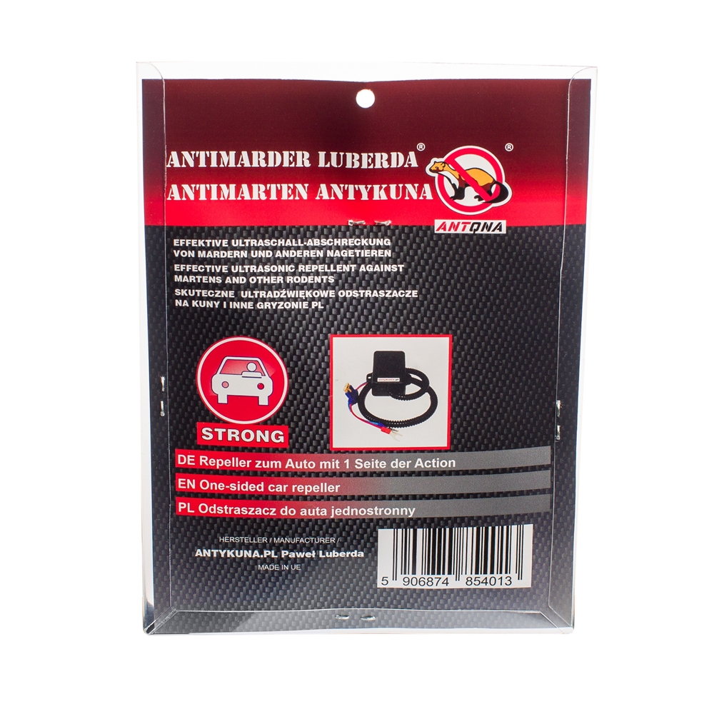 Odstraszacz ANTYKUNA STRONG emituje zmienne ultradźwięki, które wpływają na zmysły gryzoni, skutecznie odstraszając je od Twojego pojazdu. Stałe zmienne ultradźwięki powodują, że szkodniki nie mogą się do nich przyzwyczaić.