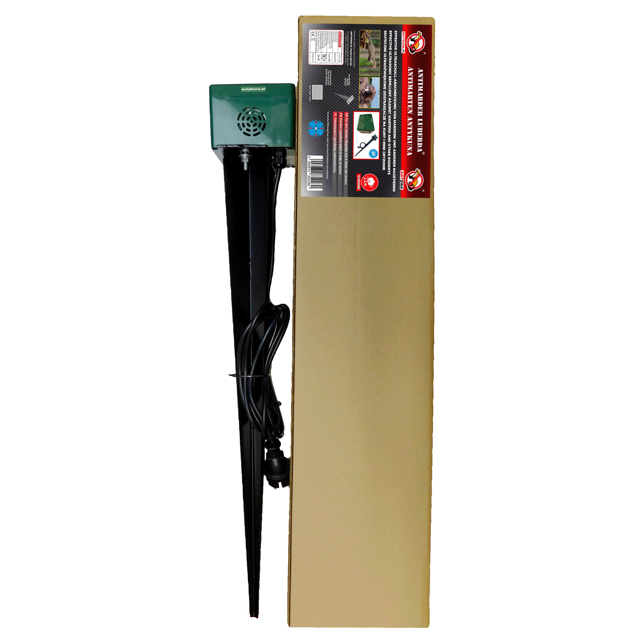 Odstraszacz MOCNY STRONG na KUNY/ NORNICE/ MYSZY/ SZCZURY Hermetyczny Wbijany działa na 4 Strony Zasilanie 230V [4280]