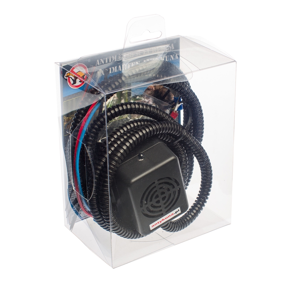 Montaż tego odstraszacza jest niezwykle prosty – wystarczy go zamontować w komorze silnika, skierować głośnik urządzenia w stronę przestrzeni z której kuna dostaję się na silnik oraz podłączyć go pod klemy akumulatora lub wyjścia prądowe.
