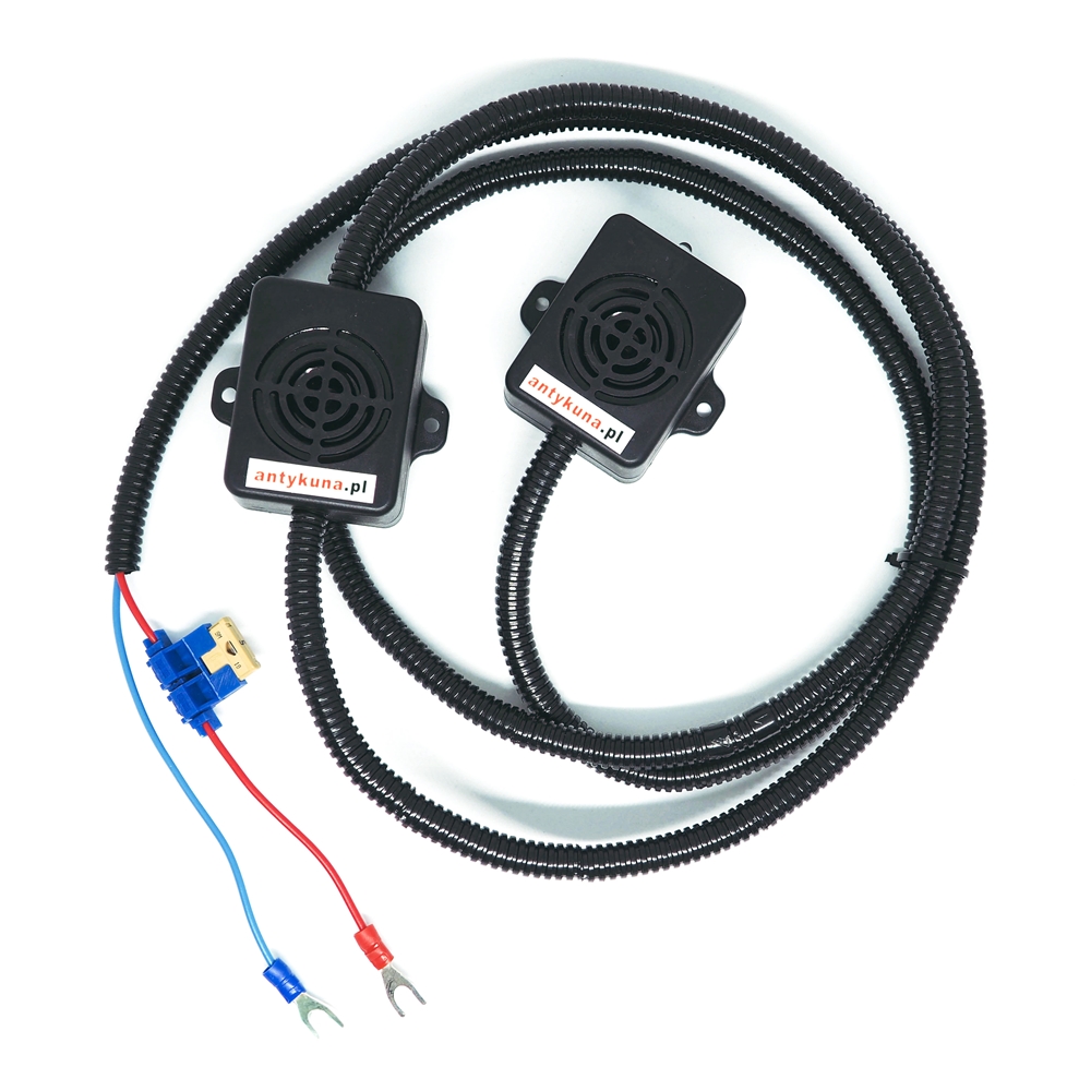 Odstraszacz posiada 2 niezależne głośniki, dzięki czemu można je zamontować w dwóch miejscach. Chroni dwie strefy wejścia do silnika. Zastosowanie znajduje w silnikach z dużą komorą silnika, bez płyty zabezpieczającej, z widocznymi dwiema strefami wejścia gryzoni. Najczęściej wybierany produkt przez naszych klientów. Odstraszacz podwójny chroni maksymalnie silnik przed niechcianymi gośćmi w naszych pojazdach.