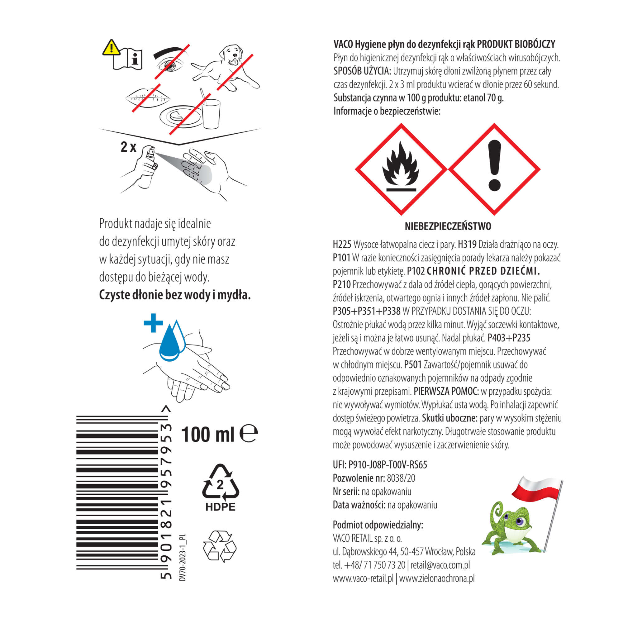 VACO Hygiene Spray jest zaprojektowany do natychmiastowego działania. Przy dezynfekcji rąk pełna skuteczność jest osiągana już po 60 sekundach, co jest niezwykle istotne w miejscach o dużym natężeniu ruchu, takich jak szkoły, biura czy lotniska.W przypadku dezynfekcji powierzchni wystarczy jedynie 1–5 minut, aby preparat zapewnił pełne działanie biobójcze, co pozwala na szybkie działanie bez przerywania ciągłości pracy ❗❗❗