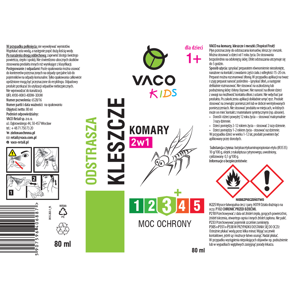 Płyn na kleszcze komary meszki dla Dzieci od 12 m-cy Płyn 80ml VACO KIDS