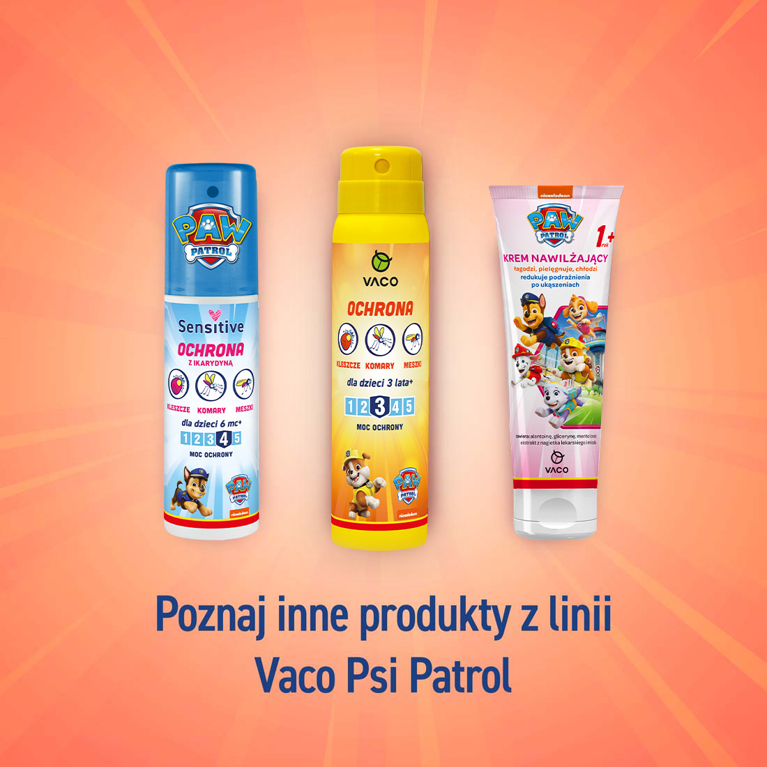Skuteczna ochrona Twojego malucha przed kleszczami, komarami i meszkami już od 12 miesiąca życia! Poznaj VACO Psi Patrol, rewelacyjny płyn stworzony specjalnie dla najmłodszych i ich delikatnej skóry.