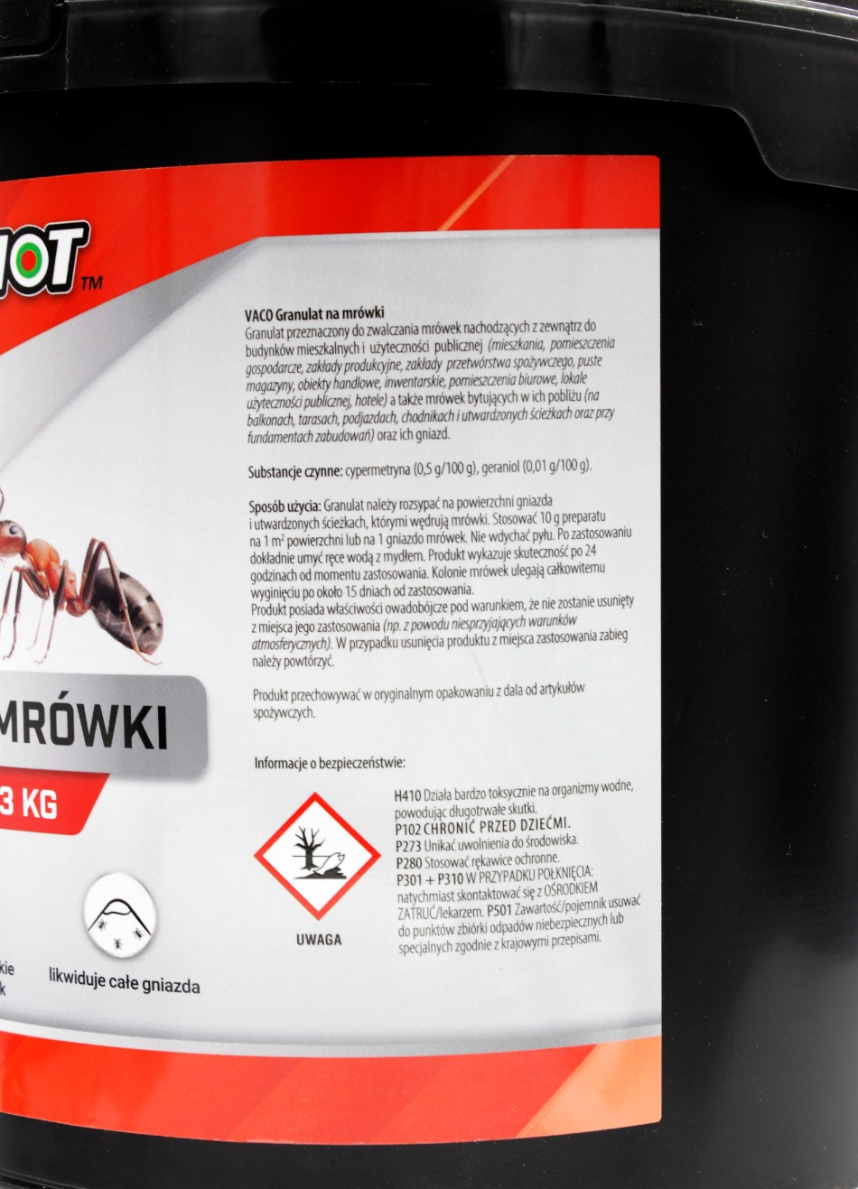 - Substancja czynna, czyli cypermetryna, działa zarówno żołądkowo, jak i kontaktowo, powodując paraliż układu nerwowego mrówek.