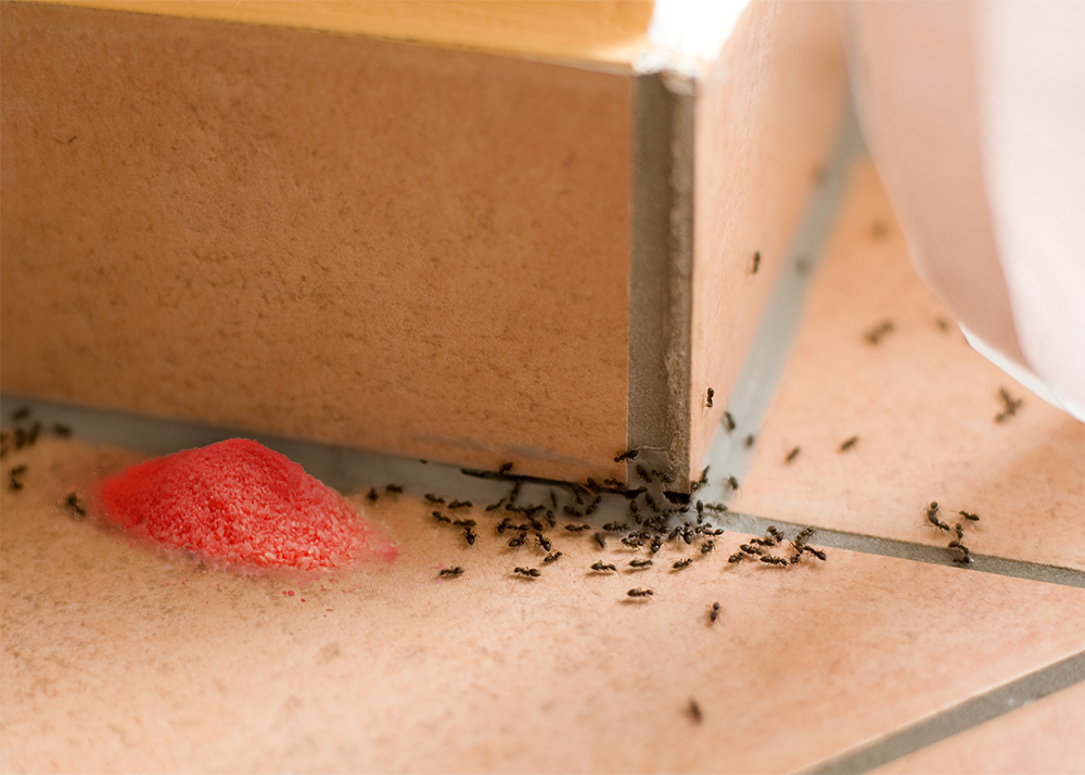 Rozsypać równomiernie widoczną warstwę na powierzchni gniazda i na ścieżkach, którymi wędrują mrówki.