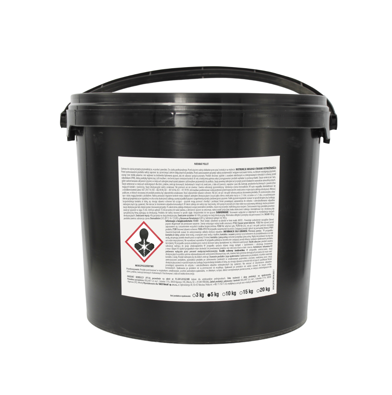 Granulat na myszy i szczury 3 kg VACO PRO – zwalczająca myszy i szczury skuteczna trutka. Substancja czynna BROMADIOLON.